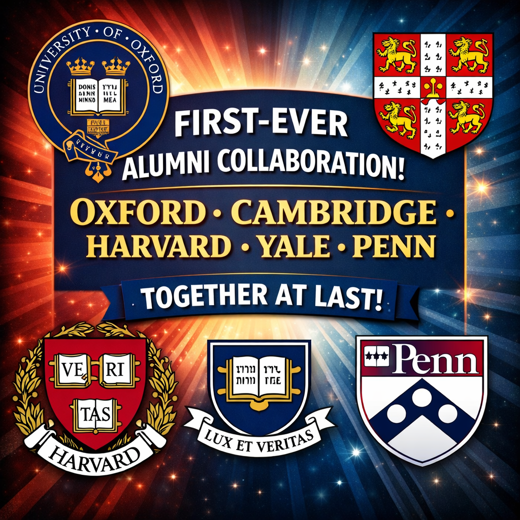 First-ever collaboration bringing together Oxford, Cambridge, Harvard, Yale, and Penn alumni!